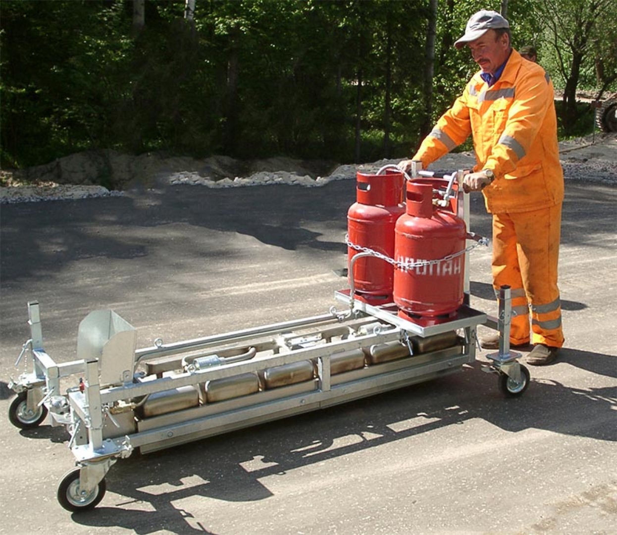 - Установка на любой асфальтоукладчик для разогрева стыка полосы при многорядной схеме укладке асфальтобетона с целью предотвращения образования поперечных и продольных стыковых швов;