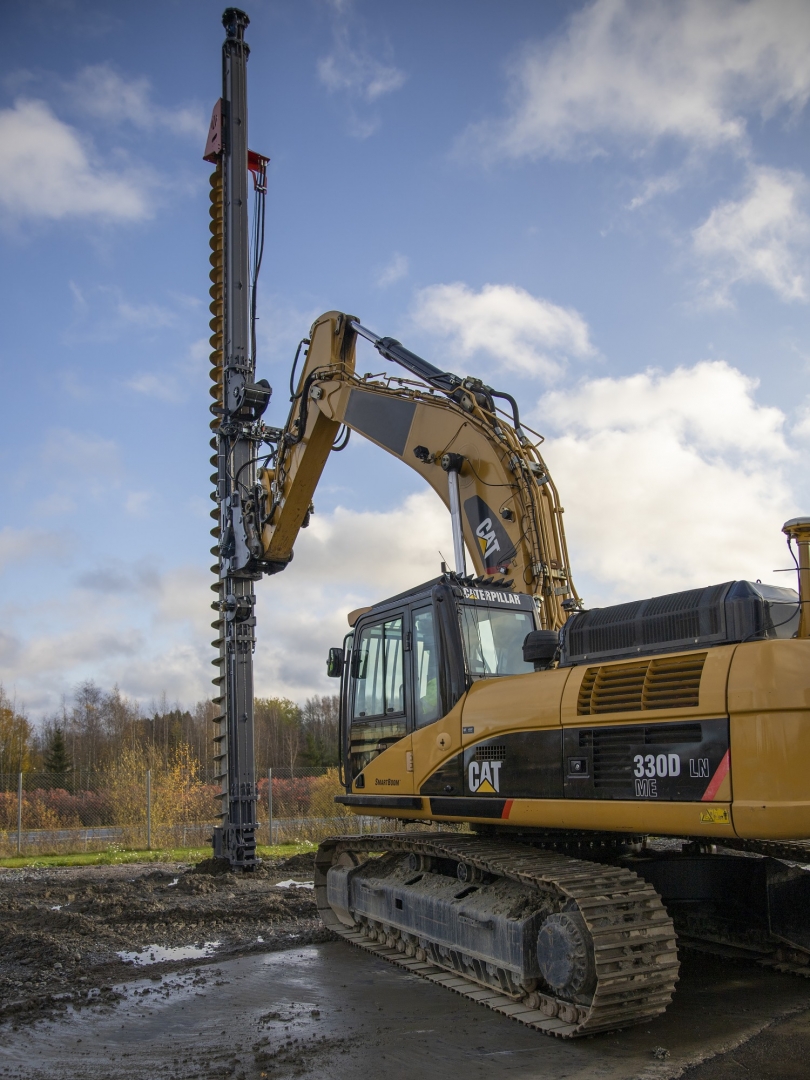 Оборудование для лидерного бурения MOVAX представляет собой лидерную мачту с буровым вращателем, смонтированную на экскаваторе для выполнения бурения при проведении свайных работ вибропогружателем с боковым захватом MOVAX и/или сваебойным молотом MOVAX в самых сложных грунтах.